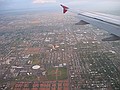 zaterdag 26 oktober 2002Ontbrekend invoegbestand weather/phoenix.html! Vandaag begon onze vakantie lekker rustig en alles verliep voorspoedig. Als je tenminste een uur vertrekvertraging normaal vindt. De piloot liep onderweg wel nog een half uur in. Het inchecken ging zelfs goed want we hoefden de koffer niet te openen omdat net iedereen bezet was. pffff. De volgende check moesten we wel door. Controle van handbagage en zelfs een compleet interview. Onderweg werd stug het licht uitgedraaid en mochten we gaan slapen. Bij aankomst waren we in no time door de Immigration en moesten we nog een uur zoetbrengen op Detroit. Het vliegveld bestaat uit een meer dan een kilometer lange hal waar zelfs een sneltram de verbindingen tussen de gates onderhoud. Ik bel met Willeke die op het internet onze vertraging als gezien had en zij bleek zelfs beter op de hoogte van onze vertrektijd dan de amerikanen hier want zij voorspelde het prima. Deze vlucht verliep ook goed maar wel saai. 1 drankje en dat was alles. De bewolking was dik maar 3 kwartier voor Phoenix brak die even en kon ik een mooie foto van Catpitol Reef maken (denk ik). De auto op Phoenix was snel geregeld en het Hotel snel gevonden. Om 18:00 waren we binnen. Toen hadden we er wel al bijna een etmaal opzitten dus.