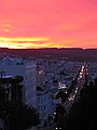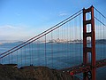 woensdag 13 november 2002Na het ontbijt bergen we de laptop op in de kluis en rijden we met de auto de third street af en parkeren onder Union Square. Vervolgens gaan aan de wandel. De eerste kennismaking met San Francisco is dan de Cable car. Er is er geeneen in zicht maar je hoort wel doorlopend de kabel onder de grond bewegen. We volgen de straat waar de kabel doorloopt en we komen bij het Cable Car Museum terecht. Hier wordt uitgelegd hoe het werkt, het is heel simpel. Je sleurt een staalkabel door een goot door de stad en je laat een street car met een soort grijper die kabel vastpakken. De car wordt dan gewoon meegetrokken. In het museum is tevens het Powerhouse en hier wordt de kabel aangedreven. De slijtage moet enorm zijn want elke bocht die we vervolgens in de straat tegenkomen horen we de kabel een herrie maken van jewelste. Onderweg door de stad moeten we vaak klimmen en dalen en kijken daarmee ook vaak in prachtige straten die naar de waterkant afdalen. De cable car klimt in sommigen piepend en knarsend omhoog. We laten downtown achter ons en wandelen verder richting de havenkant richting de brug. De vroege ochtendmist is opgetrokken tot lage bewolking en die begint nu weg te trekken. Veel wandelaars en joggers hier in het park. Vlak voor fort Point stappen we de Warming-up Place binnen en eten een turkeysandwich met koffie. De volgende klim die we doen is de Golden Gate bridge. Deze is 4200 ft lang en we lopen er over naar de andere kant. Onderweg hebben we prachtig zicht op San Francisco downtown en het eiland Alcatraz. Het verkeer dat over de brug raast is niet gering. Het lawaai van de six lanes maakt praten lastig. Aan de andere kant klimmen we nog verder omhoog naar Point Bonito en kijken nu ook op de brug zelf neer. Daarachter dus San Francisco in de ondergaande zon. Tijd om eens terug te gaan want zonder zon is het best fris. Nadat we over de brug zijn teruggelopen nemen we een bus en rijden zo in 1 keer naar Lombard street, de westelijke kant. We lopen de stijle straat op (je gelooft het niet maar er zijn er nog steiler!) en vervolgens aan de beroemde kant weer omlaag. Verderop staat Coit Tower in het laatste daglicht en boven de baai is een kleurrijke zonsondergang aan de gang. Met ons mee rijden diverse auto's slingerend naar beneden. Beneden gekomen eten we ergens heerlijke Lasanga Bianco en vervolgen onze weg dwars door Chinatown. Hier is het lekker druk, alle winkels zijn nog open. Op Union Square pikken we de auto weer op en rijden terug naar ons motel. Vermoeiende dag met 16,5 km in de benen maar we hebben wel een bijzonder tevreden gevoel.