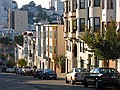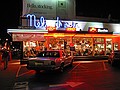 donderdag 14 november 2002Vandaag verkassen we nog een keer. Gisteren tijdens de wandeling door Lombard street zagen we veel motels en navraag gaf aan dat de prijzen acceptabel zijn. Zeker wanneer je de parkeerkosten verrekend. Dus om half tien checken we in bij Star Motel op nummer 1721. Vervolgens wandelen we op ons gemak naar downtown om het Metreon te bezoeken. De zon schijnt behoorlijk en we lopen in de schaduw om de warmte te vermijden. Het Metreon is een door Sony inc. opgezet warenhuis waar al hun producten verkocht worden. Om het aantrekkelijk te maken is er veel entertainment rondom heen geplaatst. Beneden bezoeken we de Discovery Channel Store. Op de tweede verdieping zijn games, muziek en computerzaken te vinden. We versturen daar b.v. een ter plaatse gemaakte foto van ons naar Boskoop. Op de derde verdieping zijn 15 bioskopen (de nieuwe van Harry Potter draait daar!). Het valt allemaal wat tegen. Het is nog lang niet af en het kits-gehalte is, zoals gebruikelijk in de USA, behoorlijk hoog. We zijn dus snel uitgekeken. Zelfs de lage koopdrempel van Andreh is hier tegen bestand. We eten wat in het cafe van het SFMOMA (museum of modern art) en gaan verder de stad door. We trekken dwars door het financial district. Hoge gebouwen met veel rokende mensen voor de deur. Dat roken mag tegenwoordig nergens meer binnen. Een winkelier had waarschijnlijk last van rokers die bij hem in het portiek kwamen schuilen. Bij hem stond: 'Absolutely no smoking within 100 feet' We beklimmen opnieuw een heuvel(tje) en bereiken Coit Tower. De tower is historisch gezien wel interssant maar visueel niet, deed het gisterenavond in het schemer stukken beter. Het uitzicht is wel mooi zo over de haven. We kijken, met een beetje lopen, 360 graden over San Francisco. Onderweg lopen we nog wat winkels binnen. Bij Radio Shack zien we een aanbiedinkje voor een DVD-speler: $59,-. Verderop in een grote film/muziekwinkel de limited edition (4 CD set) van deel 1 van The Lord of the Rings voor $29,-. Het kost hier soms echt weinig. We trekken richting ons motel en doen een stop voor wat nootjes en wat drinken en gaan daarna door om wat te eten. Dat doen we bij Mel's drive-in. Leuke tent, geheel ingericht naar de vijftiger jaren in de USA. Veel plastic en glimmend chroom. De bediening is overeenkomstig gekleed en uit de Juke-box komt muziek van b.v. Perry Como en De Marvelets. Hier hoort een hamburger bij.