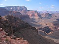 woensdag 30 oktober 2002Het is 12 uur en we eten een boterham met kaas. En dat dat doen we op Skeleton point. Het uitzicht is fabeltastisch. We kijken de Canyon in de langsrichting in en zien de Coloradoriver stromen met af en toe wat rappids. Zo ver het oog rijkt zien we de Canyon walls optijzen van ver onder ons naar ver boven ons. Je leest het goed, we zijn een heel eind de Canyon in getrokken. Het punt waar we nu zitten ligt 617 meter lager dan de South rim en 3,23 km daar vanaf. Deze plek heet Skeleton point en ligt aan het Kaibab trail. Vanochtend zijn we na het klaarmaken van wat bruine boterhammen met kaas op de bus gestapt. Er rijden in the village gratis bussen die je met gemak van de ene plek naar de andere brengen. Je komt er zelfs op plekken waar je anders niet kunt komen; de auto heeft hier geen vrije toegang meer. Bij het visitors center stappen we over en even later zijn we bij het South Kaibab trailhead. Even voor tienen dalen we af de Canyon in naar het eerste punt. Dit heet heel toepasselijk het Ooh Aah point want ineens krijg je een enorm uitzicht naar het oosten. Vervolgens verder afdalend komen we bij Cedar ridge. Bij Cedar ridge nemen we wat meer pauze en kijken ondertussen naar groep muilezels die een aantal toeristen bovenbrengt. Een andere groep muilezels gaat met zakken beladen naar beneden. Wanneer we verder afdalen komen we er achter wat deze doen: er wordt gewerkt aan het pad. De dieren brengen zakken met materiaal naar 2 mannen die bezig zijn het pad te herstellen. Zeker geen overbodige luxe want soms zijn de stappen die we moeten nemen groter dan 3 traptreden. Skeleton point ligt op 1599 m hoogte (vlgs. de gps) en over de trip naar beneden deden we totaal 2 uur. Na een uurtje maken we ons op voor de klim terug. Druk is het niet onderweg. Een aantal hikers daalt verder af naar de rivier om daar de nacht door te brengen, andere gaan net als wij terug. Al met al komen we zo'n kleine 20 hikers tegen. Die terugreis is zeker niet gemakkelijk en we nemen diverse pauzes onderweg. Na 2 uurn 20 minuten zijn we terug bij het startpunt op 2216 meter. Voor Andreh had het niet verder gehoeven, maar het geeft wel een voldaan gevoel. Op deze manier beleef je de Grand Canyon pas echt. De bus brengt ons weer terug en onderweg doen we nog wat boodschappen. Thuis in de Thunderbird lodge lekker douchen, een glaasje wijn en daarna even eten. Dat eten doen we in het cafetaria van Maswik lodge. Een leuke ruimte aangekleed met indiaans icons. Ook deze keer brengt de bus ons weer terug.