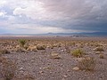 vrijdag 8 november 2002We voegen met onze auto in de drukke ochtendspits van Las Vegas in en rijden dwars door de stad naar de Boulder highway. Deze brengt ons vervolgens bij de Hoover dam. We parkeren aan de overkant, in Arizona dus, waar nu nog plek genoeg is. Dit kost wat moeite want de veiligheidsmaatregelen zijn niet mis. Roadblocks moeten voorkomen dat onverlaten iets ongewensts de dam oprijden en later moeten we zelfs door controlepoortjes lopen en alle metalen voorwerpen laten bekijken. De wandeling over de dam is al heel indrukwekkend. Aan de ene zijde het grote Lake Mead en aan de andere kant de hoogte van de dam zelf. Aan de andere zijde aangekomen doen we de guided tour en laten we ons meesleuren door het verbale commerciele geweld van de Amerikaanse grootspraak. Alles aan de dam is groter, hoger, beter enz. Maar het moet gezegd het is een knap stukkie werk wat ze in 1935 hebben opgeleverd. En de dam staat niet op zich zelf. Verder op in de Colorado rivier staan nog meer dammen en tesamen zorgen ze voor een goede distributie van het beschikbare water. De stroom zien ze trouwens als bijproduct. De tour brengt ons ook beneden in 1 van de generator kamers. Verder is er 1 en ander te zien over de bouw. Leuk detail is het jaar 1983. Toen is de waterstand zo hoog geweest dat de noodoverloop heeft moeten werken. Dat is nu nog te zien aan de witte rand rondom het meer. In de middag gaan we opnieuw langs Las Vegas maar nu direct door, richting Death Valley. We slaan onderweg af richting The Devil's hole en gaan daar een stuk binnendoor. De kaart geeft al aan dat dit geen onderhouden weg is en dat moet je letterlijk nemen. Het asfalt wordt slechter en gaat na 2 miles over in gravel. De paaltjes en bordjes langs de weg verdwijnen en het laatste huis dat we zien is een soort ranch waar een aantal dames zichzelf aanprijzen. Daarna alleen nog maar wildernis en het bonken van de auto. De stofwolk we in ons kielzog opjagen wordt door de forse wind tot ver over de kale vlakte geblazen. Pech moet je hier niet krijgen. Je komt letterlijk niemand tegen en de cellphone is als sinds het verlaten van Las Vegas 'uit de lucht'. Over dit stuk doen we 3 spannende kwartieren. Pas weer in de bewoonde wereld is hulp van enige betekenis te verwachten. En die bewoonde wereld is in ons geval Amargosa. Dit dorp heeft 1 benzinepomp en wat huizen. Die liggen echter zo ver uit elkaar dat we er 2 zien. Ze zijn er echter wel want de schoolbus levert een aantal kinderen bij de pomp af om door de ouders te worden opgehaald. We zorgen dat onze tank gevuld is en gaan dan verder naar Death Valley. Tot onze grote verrassing is het daar DRUK. Een heel groot terrein staat vol met Campers en bij het Visitors center is veel volk. Er blijkt dit weekend de jaarlijkse 49ers Encampment plaats te vinden. Een vereniging die allerlei activiteiten in Death Valley organiseerd. De zon gaat nu onder en we rijden door naar Beatty. De laatste 35 miles leggen we af in het stikke donker op onverlichte wegen. Daar was dat van vanmiddag nog heilig bij. Om 6 uur komen we daar aan en regelen onderdak. Eten doen we gemakkelijk op de kamer. Wat een contrasten vandaag; van de commerciële hightech van Las Vegas naar de hightech uit 1935 met de Hoover dam en vervolgens door naar een streek waar geeneens bestrating aanwezig is en de mensen in golfplaten hutten wonen.