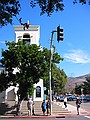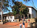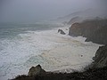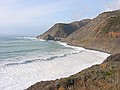 zondag 10 november 2002Vandaag is het zondag en we brengen de dag overeenkomstig door. We staan wat later op dan gewoon en gaan op ons gemak naar San Luis Obispo. Het weer werkt ook mee want het is prachtig en warm weer. In San Luis Obispo Lopen we we wat rond in de stadskern. We bekijken de missie die net uitgaat. Vervolgens zien we op onze trip een prachtig theater en enkele mooie gebouwen. Het mooist echter zijn toch de Amerikanen zelf die we tegenkomen. Veel kerkgangers bij voorbeeld die met bundel onder de arm netjes worden begroet bij het binnen gaan van de kerk. Verder passeren ons veel joggers en incidenteel mensen die boodschappen doen. Zeker de levensmiddelenwinkels gaan hier net als door de week op tijd open. De overige winkels gaan tegen het eind van de ochtend open en we maken van de gelegenheid gebruik een platenwinkel af te struinen. Veel onbekend werk hier maar ook leuk zijn dingen zoals een kast vol met gesproken boeken en nog heel veel voorbespeelde audiocassettes. De eigenaar is zeer geïnteresseerd in onze mening over Irak en de Amerikaanse standpunten en is zelf minder extreem dan 's lands opperhoofd. Tegen 12 uur vertrekken we via de 1 naar Monterey. Het ziet er allemaal feestelijk uit als we met het mooie weer langs Morro Bay rijden. De surfers zullen plezier hebben want de storm van de afgelopen dagen heeft voor hoge golven gezorgd. Wanneer we verder omhoog klimmen zien we dat door het constante gebeuk van die golven er zoveel water in de lucht hangt dat het er heiig van is. Wanneer we in de buurt van Monterey komen wordt het weer toch weer minder. De wolken gaan steeds lager hangen en af en toe krijgen we een bui. De temperatuur blijft wel goed want 's avonds, na het inboeken in ons motel en het starten van de wasmachine doen we weer gewoon boodschappen in ons T-shirt.