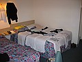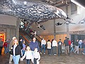 maandag 11 november 2002De was wil niet droog. Het kwam al even nat uit de droger dan het er inging, maar nu een dag later is het nog steeds niets. We lieten het spul uitgespreid op de bedden en stoelen liggen en gingen lopend naar de waterkant van Monterey. We lopen langs de haven en de Fisherman's Warf richting Cannery Row en stevenen regelrecht op the Monterey Bay Aquarium af. Er werd gezegd dat bespreken in alle seizoenen nodig is en we zijn bang dat vandaag Veteran's day, een nationale feestdag, een probleem zal opleveren. Dat valt gelukkig mee en we lopen zo binnen. Vele uren later hebben we vanalles van het onderwaterleven gezien. Specials zijn de Jellyfish oftewel de kwallen en the Outerbay waarin tonijnen rondzwemmen in een metershoge/diepe/lange bak als goudvisjes in een kommetje. Sluitstuk is het metershoge kelpaquarium. Dit is zoals ik het wellicht live had kunnen zien als het duiken was doorgegaan. Mantaray, de duikclub waar ik contact mee had opgenomen vond het niet safe genoeg. De storm van voor dit weekend zorgt nu nog voor golven van 10 feet (3 m). Ook een divecenter op Cannery Row dacht niet dat duiken voor zaterdag mogelijk zou zijn door de sterke golven en het slechte zicht onderwater. Mooi jammer. 's Middags lopen we terug van het aquarium en doen de pier van Fishermans Warf aan. Een broodje gerookte zalm in de warme middagzon en je dag kan niet meer stuk. En daarmee is deze dag al weer om. Het wordt hier al rond 5 uur donker, daar moeten we nog wel aan wennen.