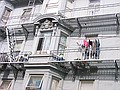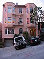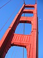 woensdag 13 november 2002Na het ontbijt bergen we de laptop op in de kluis en rijden we met de auto de third street af en parkeren onder Union Square. Vervolgens gaan aan de wandel. De eerste kennismaking met San Francisco is dan de Cable car. Er is er geeneen in zicht maar je hoort wel doorlopend de kabel onder de grond bewegen. We volgen de straat waar de kabel doorloopt en we komen bij het Cable Car Museum terecht. Hier wordt uitgelegd hoe het werkt, het is heel simpel. Je sleurt een staalkabel door een goot door de stad en je laat een street car met een soort grijper die kabel vastpakken. De car wordt dan gewoon meegetrokken. In het museum is tevens het Powerhouse en hier wordt de kabel aangedreven. De slijtage moet enorm zijn want elke bocht die we vervolgens in de straat tegenkomen horen we de kabel een herrie maken van jewelste. Onderweg door de stad moeten we vaak klimmen en dalen en kijken daarmee ook vaak in prachtige straten die naar de waterkant afdalen. De cable car klimt in sommigen piepend en knarsend omhoog. We laten downtown achter ons en wandelen verder richting de havenkant richting de brug. De vroege ochtendmist is opgetrokken tot lage bewolking en die begint nu weg te trekken. Veel wandelaars en joggers hier in het park. Vlak voor fort Point stappen we de Warming-up Place binnen en eten een turkeysandwich met koffie. De volgende klim die we doen is de Golden Gate bridge. Deze is 4200 ft lang en we lopen er over naar de andere kant. Onderweg hebben we prachtig zicht op San Francisco downtown en het eiland Alcatraz. Het verkeer dat over de brug raast is niet gering. Het lawaai van de six lanes maakt praten lastig. Aan de andere kant klimmen we nog verder omhoog naar Point Bonito en kijken nu ook op de brug zelf neer. Daarachter dus San Francisco in de ondergaande zon. Tijd om eens terug te gaan want zonder zon is het best fris. Nadat we over de brug zijn teruggelopen nemen we een bus en rijden zo in 1 keer naar Lombard street, de westelijke kant. We lopen de stijle straat op (je gelooft het niet maar er zijn er nog steiler!) en vervolgens aan de beroemde kant weer omlaag. Verderop staat Coit Tower in het laatste daglicht en boven de baai is een kleurrijke zonsondergang aan de gang. Met ons mee rijden diverse auto's slingerend naar beneden. Beneden gekomen eten we ergens heerlijke Lasanga Bianco en vervolgen onze weg dwars door Chinatown. Hier is het lekker druk, alle winkels zijn nog open. Op Union Square pikken we de auto weer op en rijden terug naar ons motel. Vermoeiende dag met 16,5 km in de benen maar we hebben wel een bijzonder tevreden gevoel.